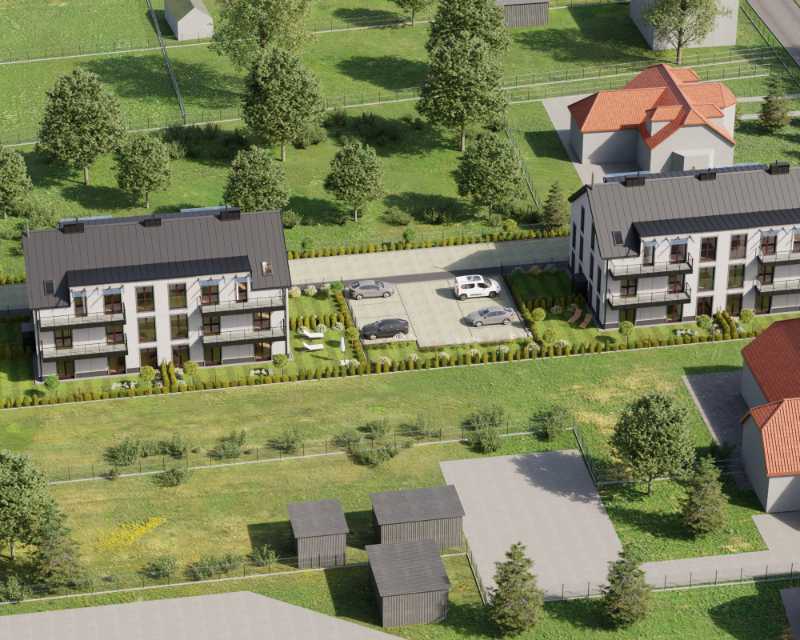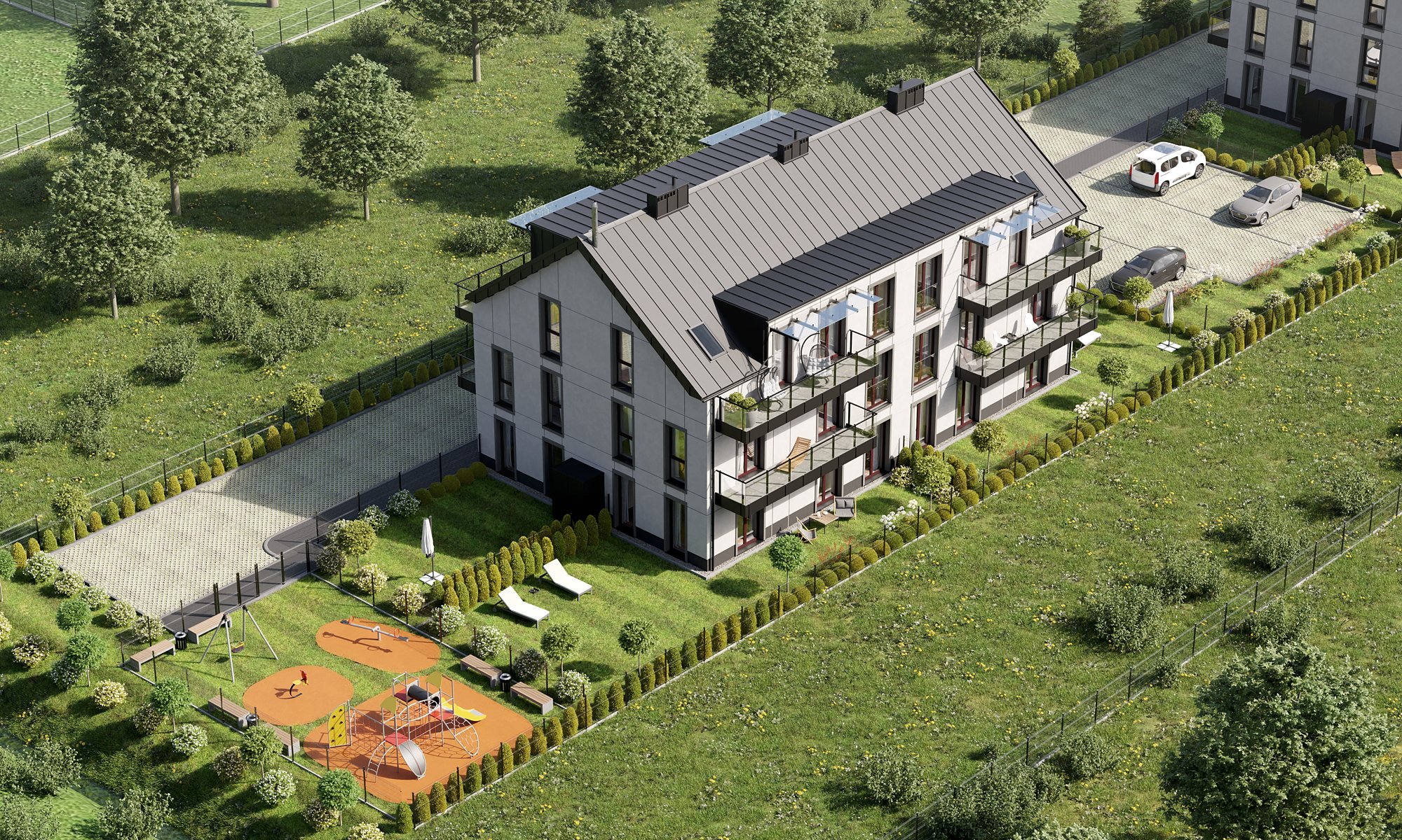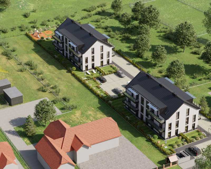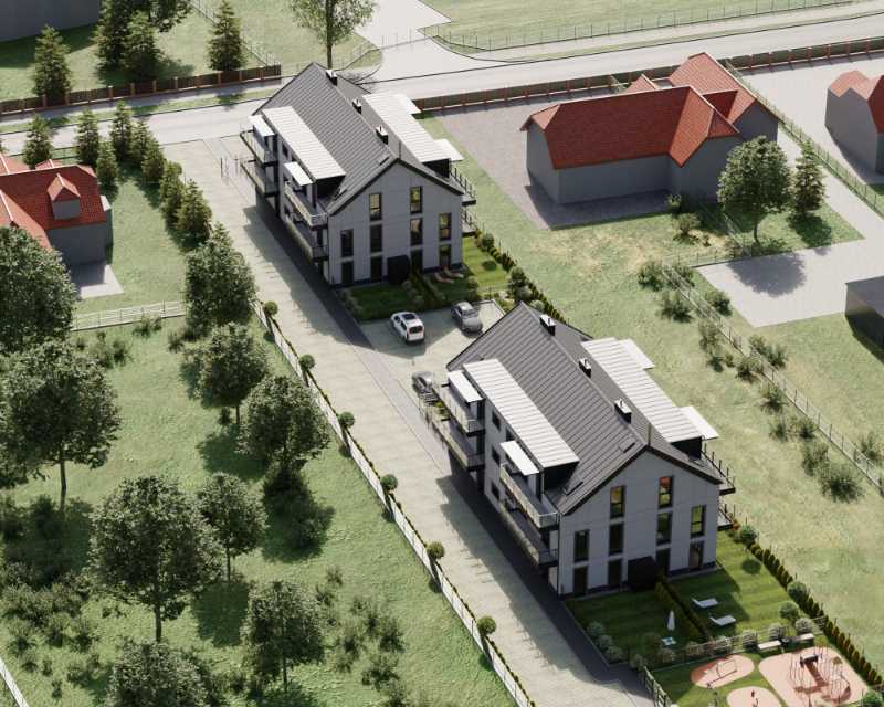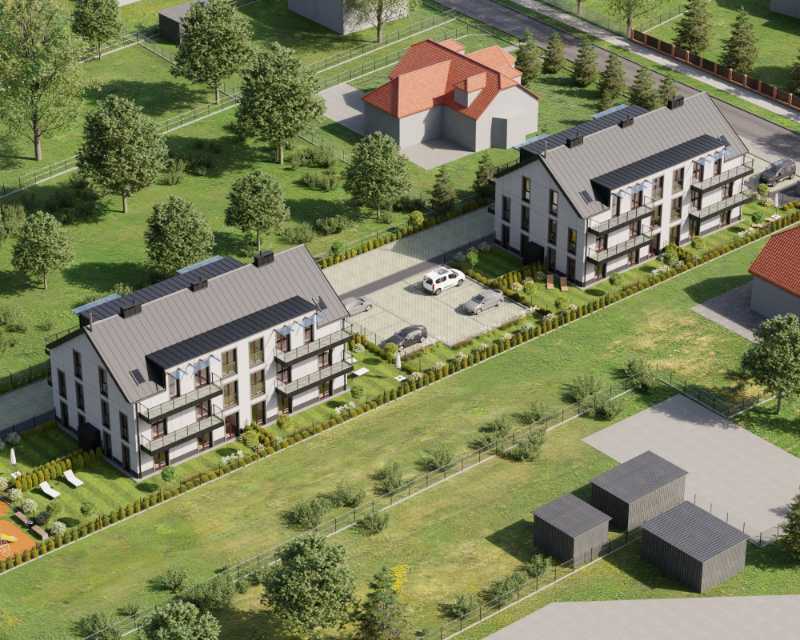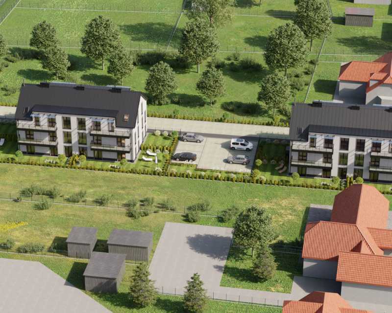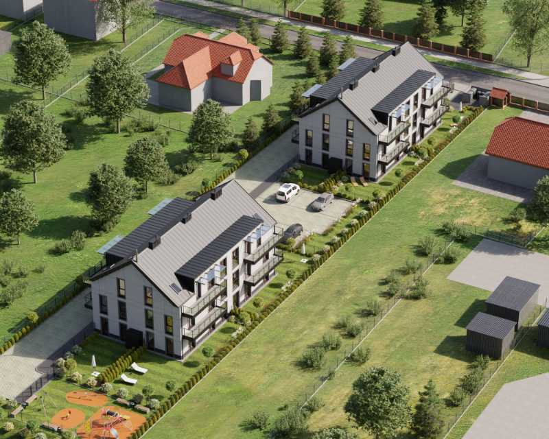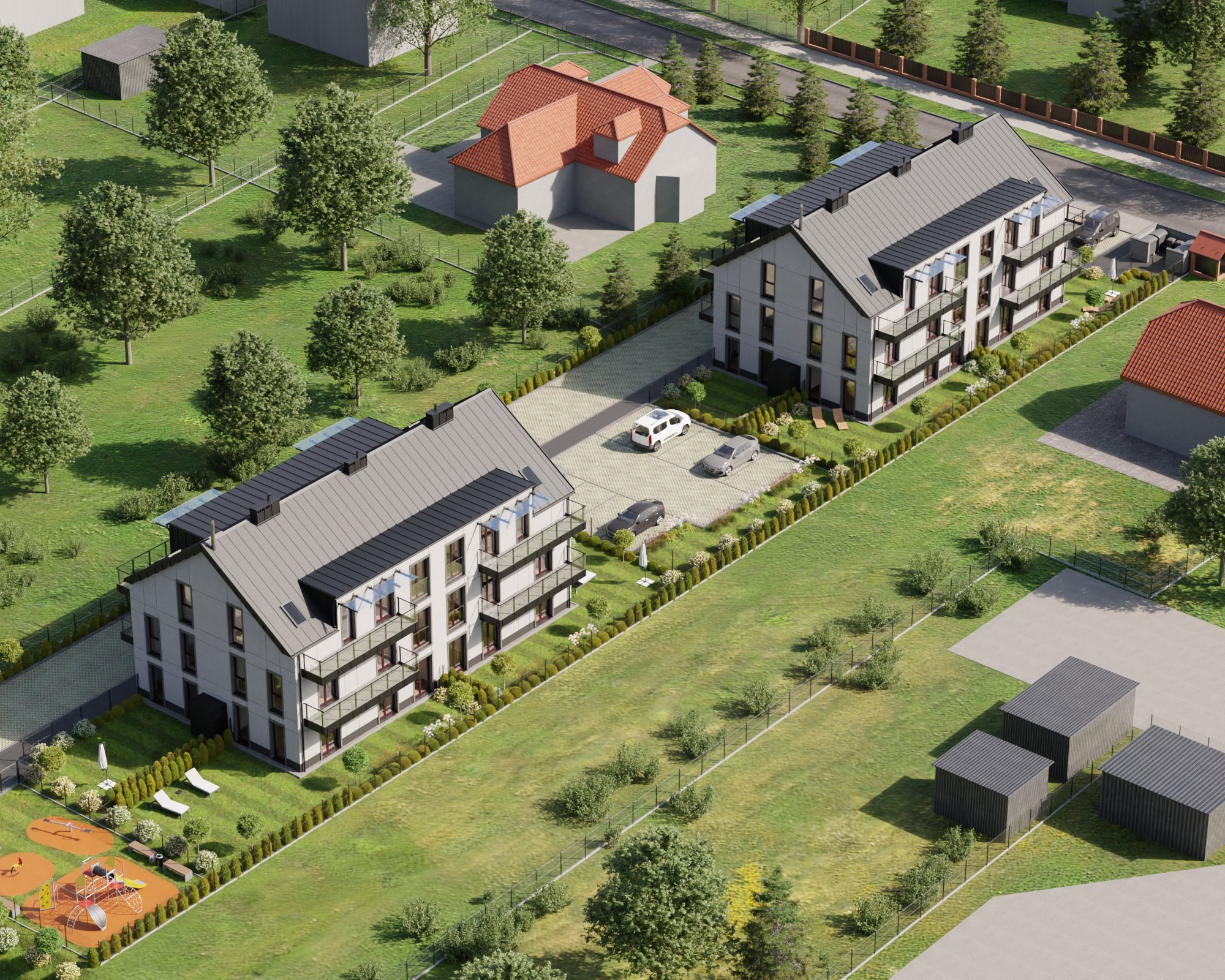 W ramach inwestycji powstaną dwa budynki, a w każdym z nich 12 przestronnych mieszkań. To spokojne osiedle, które przekona do siebie osoby ceniące ciszę i funkcjonalność lokali. Elewacja została zaprojektowana tak, żeby na co dzień cieszyć oczy przyszłych mieszkańców.