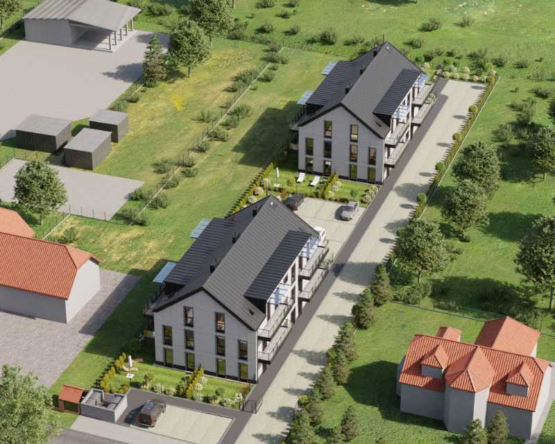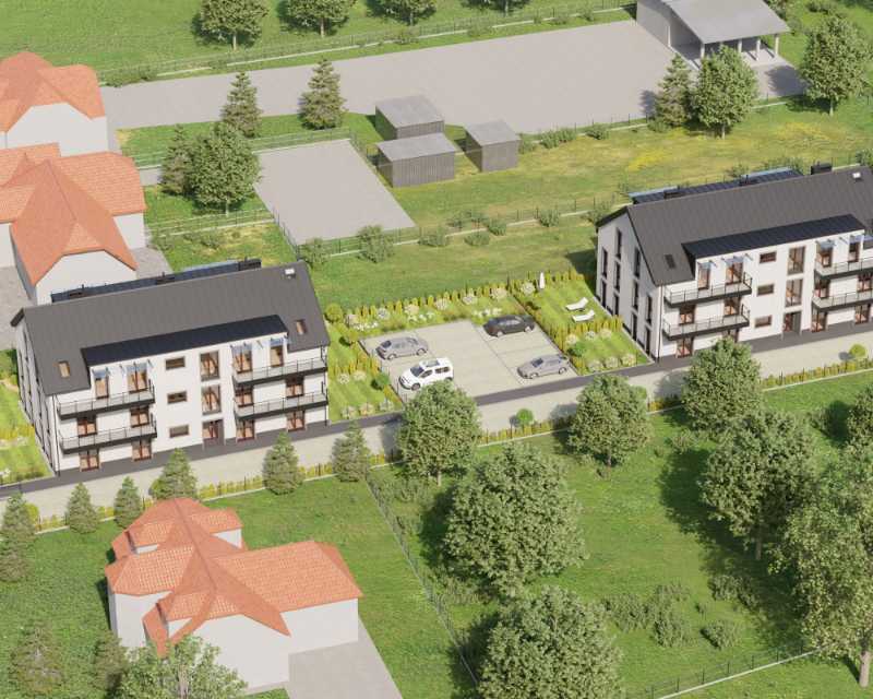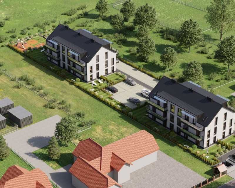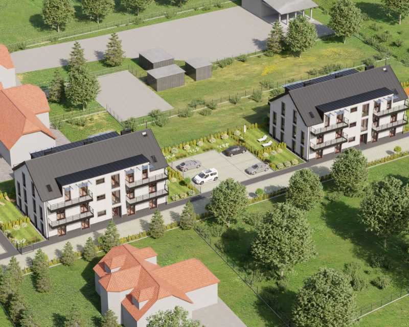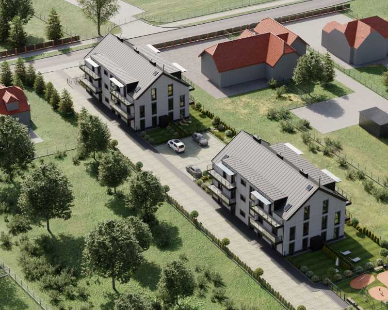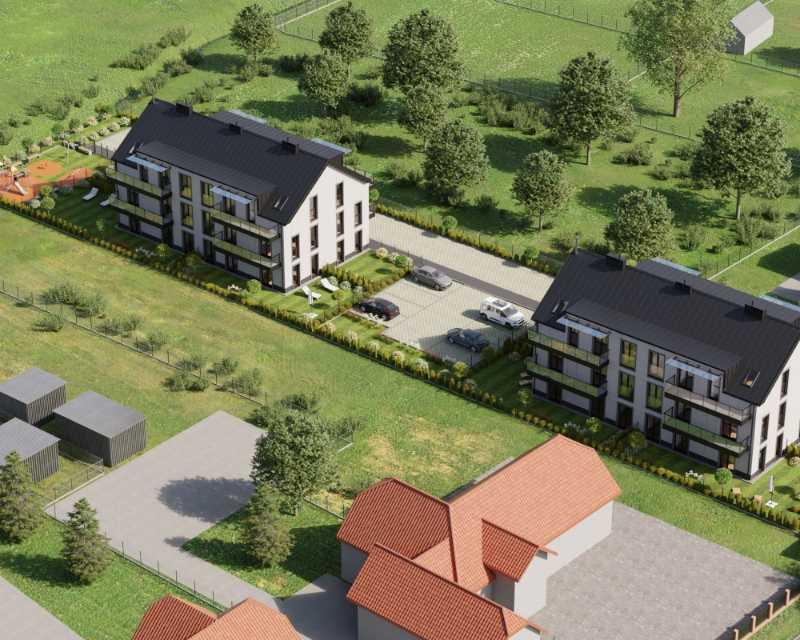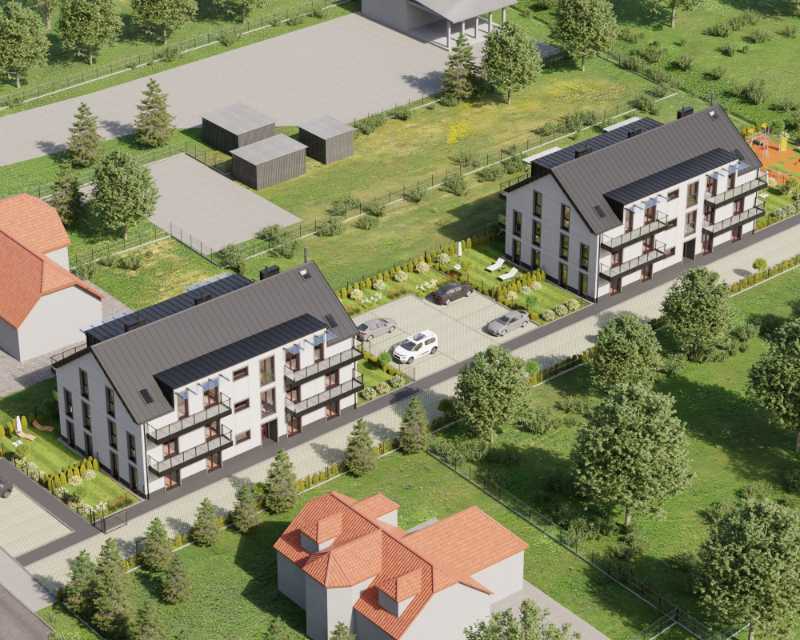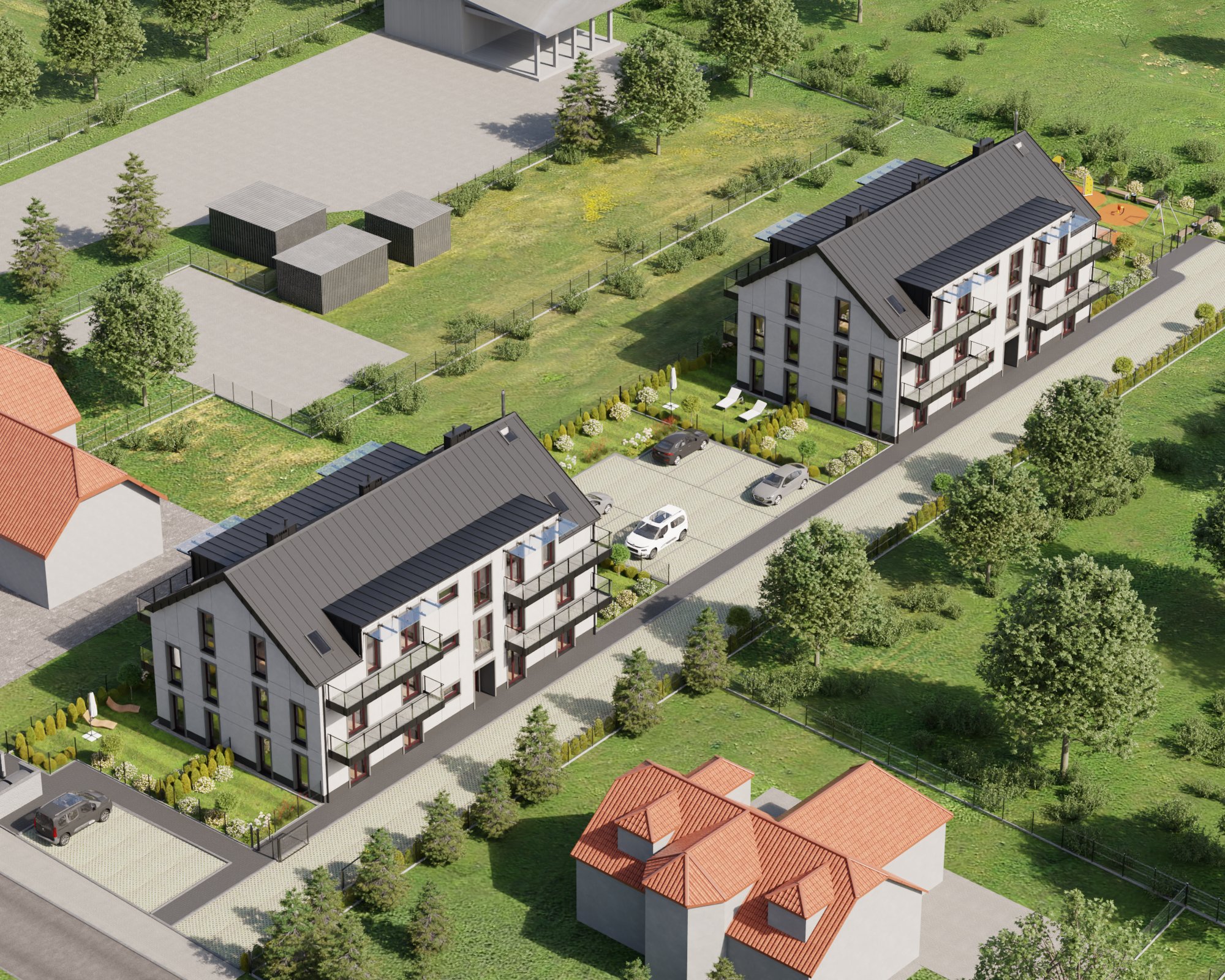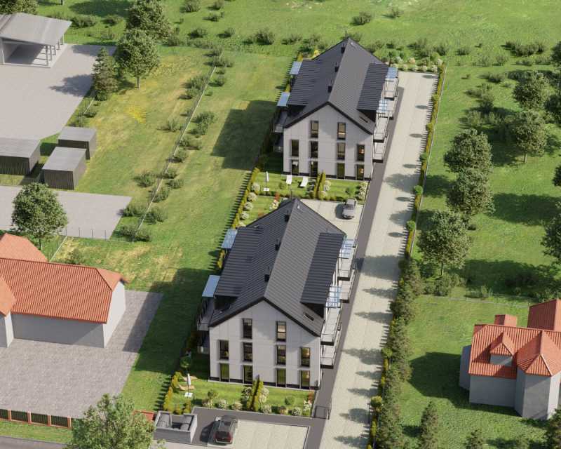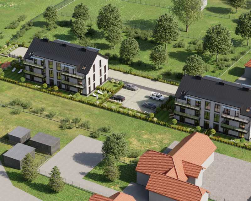W ramach inwestycji powstaną dwa budynki, a w każdym z nich 12 przestronnych mieszkań. To spokojne osiedle, które przekona do siebie osoby ceniące ciszę i funkcjonalność lokali. Elewacja została zaprojektowana tak, żeby na co dzień cieszyć oczy przyszłych mieszkańców.